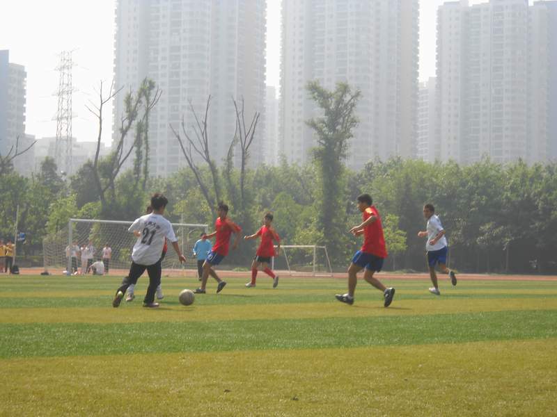火热的迎新足球联赛持续到10月17日,进入第五场。本场比赛由08级一班对战10级二班。