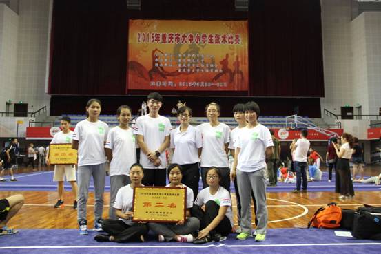 重庆市大中小学生武术比赛,于2015年5月28日—31日在重庆师范大学大学城校区体育馆举行,vwin德赢武术队不负众望,从众多比赛队伍中脱颖而出,以六个单项冠军、三个单项亚军、五个单项季军的骄人成绩,分别获得女子、男子丙组团体总分第二名,男女综合团体总分第一名。