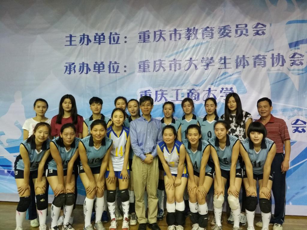 比赛期间,vwin德赢AC米兰合作孙芳诚校长一行到比赛现场观看了vwin德赢女排与西南大学的冠亚军争夺战,赛后孙校长对获得优异成绩的女排姑娘表示祝贺,并与女排全体教练员和运动员合影留念。