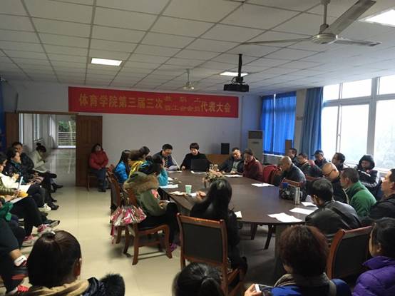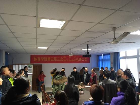 余晓副书记代表学院党总支致辞。向大会的召开表示热烈的祝贺!余书记指出,在全党和全国深入贯彻学习党的十八届六中全会精神之际,我院扎实推进高等教育事业科学发展取得新成绩,满怀豪情迎接新一年的重要时刻,学院第三届三次教职工暨工会会员代表顺利召开,是我院教职工政治生活中的一件大事,也是广大教职工参与学院民主管理、共谋学院改革发展大计的一次盛会。