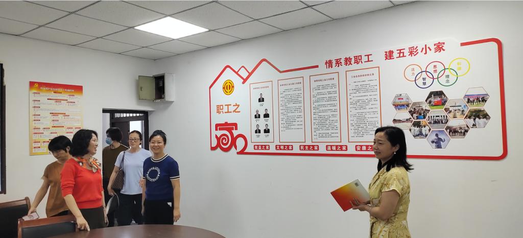 2023年5月24下午,重庆市教科文卫体工会副主席袁菁霞、二级调研员刘春艳以及vwin德赢AC米兰合作工会副主席邱枫一行到vwin德赢ac米兰官方就“五彩职工小家建设”进行调研并指导工作。vwin德赢ac米兰官方党总支书记王静、组织员余晓、工会主席张亚峰、办公室主任周晋、学工办主任傅杨以及全体工会委员参加了学习调研。