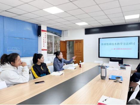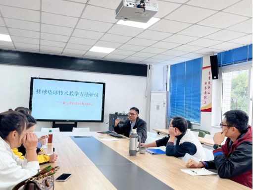 2023年11月14日下午,vwin德赢ac米兰官方排球组教师在vwin德赢ac米兰官方会议室召开了“排球垫球技术教学方法研讨——兼与课程思政教育同行”主题研讨会;本次主题研讨会旨在提高排球组教师的教学水平和专业素养,促进教师间的交流与合作,共同探讨教学方法和教学资源的优化。此次教研会议由体育系主任杨辉教授主持。