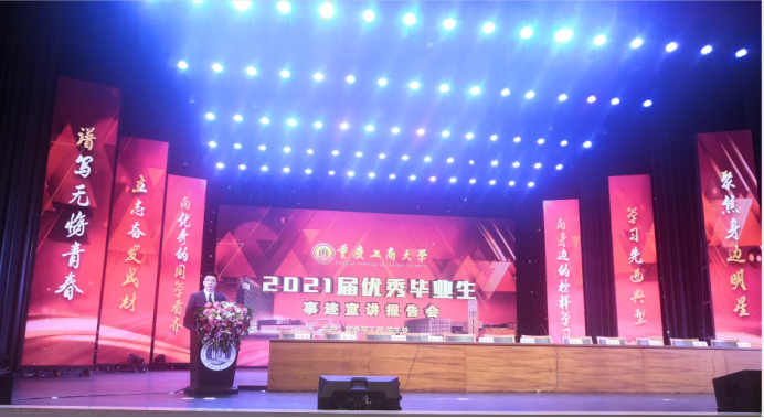 2021年5月13日,vwin德赢AC米兰合作2021届优秀毕业生宣讲报告会在图书馆剧场隆重举行,vwin德赢ac米兰官方2017级体育教育专业学生陈月星代表学院参加了此次优秀毕业生宣讲报告会。