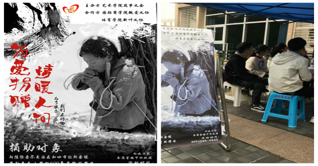 此次活动为新疆维吾尔自治区和田市拉斯奢镇库勒来克小学的600余名贫困学生募捐衣物及学习用品。在这里特别感谢傅红梅、石婷、邓婷婷、苟明娟等同学对本次活动的支持。本次募捐的物品已于10月30日交由艺术学院筑梦义协统一发往库勒来克小学的孩子们。相信我们的爱心能为库勒来克小学孩子们的冬天带去温暖和希望。