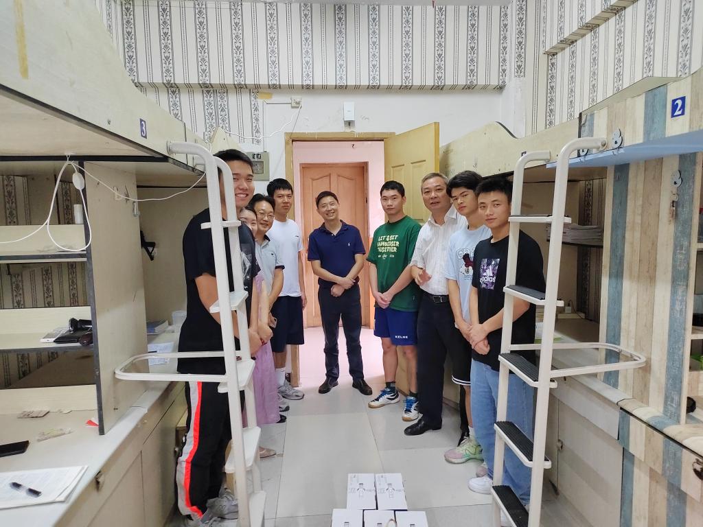 9月8日下午,学校党委常委、副校长李国军带队深入学生公寓,看望和关心我院暑期留宿学生,为假期留校学生送上亲切关怀和节日祝福。学生处处长申卫东,副处长张朝毅及vwin德赢ac米兰官方党总支副书记张薇薇陪同走访。