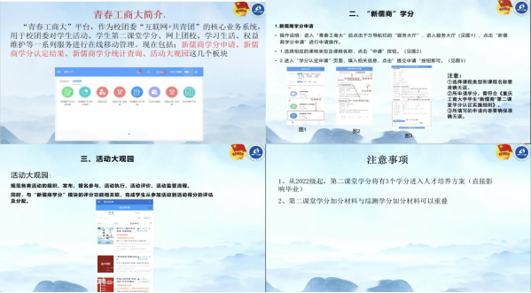 为了进一步提升vwin德赢ac米兰官方的人才培养质量,积极培育具有“新儒商”精神的高素质人才,vwin德赢ac米兰官方分团委素拓部于9月27日14点在线上成功举办了2024年青春工商大平台操作培训会。此次培训会旨在提高学生对青春工商大平台的理解程度与操作能力,为他们未来的学习和实践打下坚实基础。