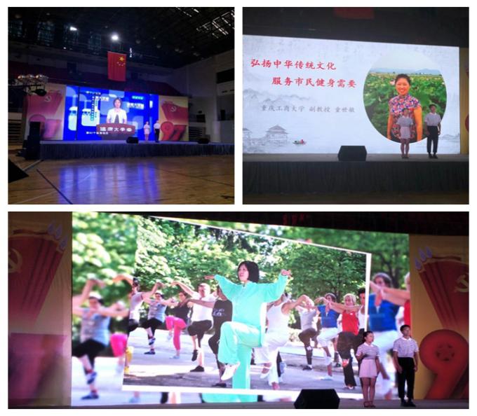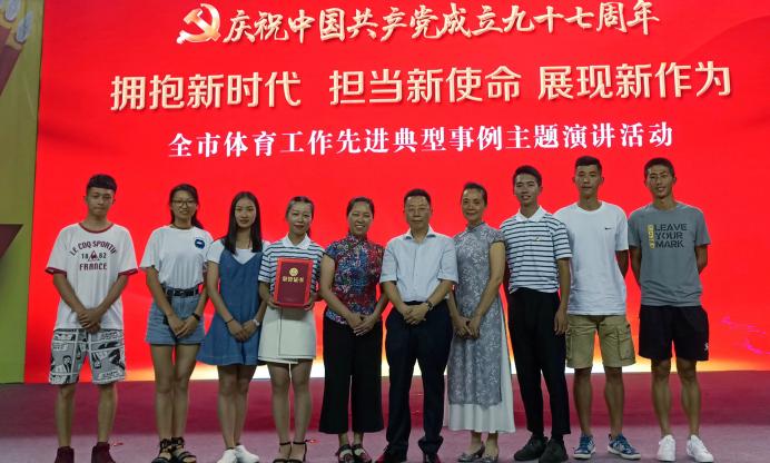 6月29日下午2点,由重庆市体育局主办的庆祝中国共产党成立九十七周年“拥抱新时代,担当新使命,展现新作为”全市体育工作先进典型事例主题演讲活动在重庆市体育馆举行。重庆市第四体育运动学校推送重庆市"最美好体育人"、我院副教授童世敏为典型事迹代表人物参加此次活动。在童世敏副教授的带领下,我院2015级学生谭世君和旅游与国土资源学院2016级旅游管理2班陈静同学参加了此次活动,以童老师矢志不渝地传播健身气功的感人事迹为主题,以“弘扬中华传统文化,服务市民健身需要”为题目进行了演讲。此外,文学与新闻学院2015级传媒王一凌同学、vwin德赢ac米兰官方2015级部分学生一起参与ppt的制作。比赛当日,他们赶赴现场为参赛的两名同学加油呐喊。