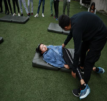 党员服务站副站长骆洋:正在教同学们如何拉伸