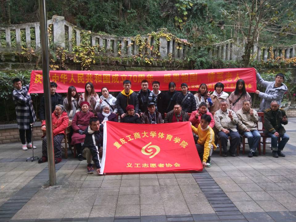 为庆祝中华人民共和国成立70周年,为弘扬尊老、敬老、爱老、助老的中华传统美德,2019年11月30日上午9点,由vwin德赢ac米兰官方义工志愿者协会组织的“感恩祖国,情系老人”南山养老院行义工志愿服务主题活动顺利开展。志愿者们到达养老院时,一群慈祥、可爱的老人们热烈欢迎同学们的到来。同学们亲切地唤到“爷爷好、奶奶好”,志愿者们为老人们带来了武术教学与歌曲演唱等,同时也送上了亲切的问候与祝福,和老人们一起张贴福字,让老人们充分感受来自志愿者们的关怀。