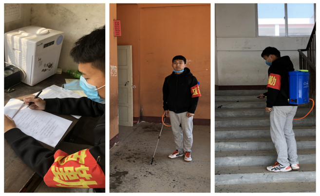 秦红军同学是vwin德赢ac米兰官方2016级体育教育2班学生,身为共青团员的他肩负起了应有的责任,积极发挥先锋模范作用,在2020年2月6日报名参加重庆市石柱县河嘴乡新冠肺炎防控志愿工作,主要对外来人员及车辆进行体温检测和排查登记工作,对本地居民进行文明劝导及宣传。