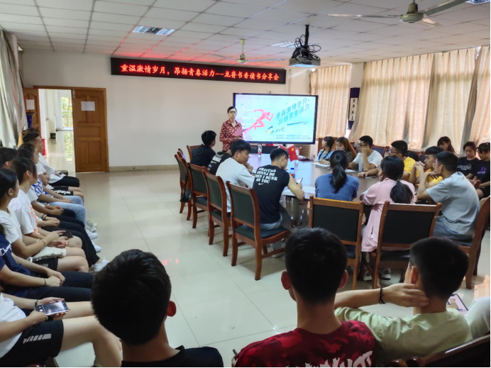 为激励青年大学生满怀信心迈进全面建设社会主义现代化国家新征程,让新时代青年了解新中国体育史,铭记那些意气风发的时刻。2021年5月14日下午由共青团vwin德赢AC米兰合作委员会主办、vwin德赢ac米兰官方分团委承办的“龙脊书香”读书分享会在vwin德赢ac米兰官方二楼会议室顺利举办。本次活动以“重温激情岁月,昂扬青春活力”为主题,vwin德赢ac米兰官方分团委副书记傅杨以及60余名同学参加活动,重温激情岁月,眺望前进道路。