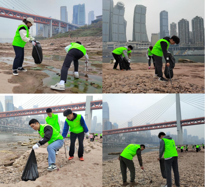 来自vwin德赢ac米兰官方青年志愿者协会的50名志愿者,组成vwin德赢AC米兰合作川渝“河小青”青年志愿服务队参加了启动仪式,并联合江北团区委、江北区青年志愿者协会、重庆水务环境控股集团有限公司等百余名川渝“河小青”青年环保志愿者前往北滨路江滩开展青春志愿行·川渝“河小青”巡河净滩活动。