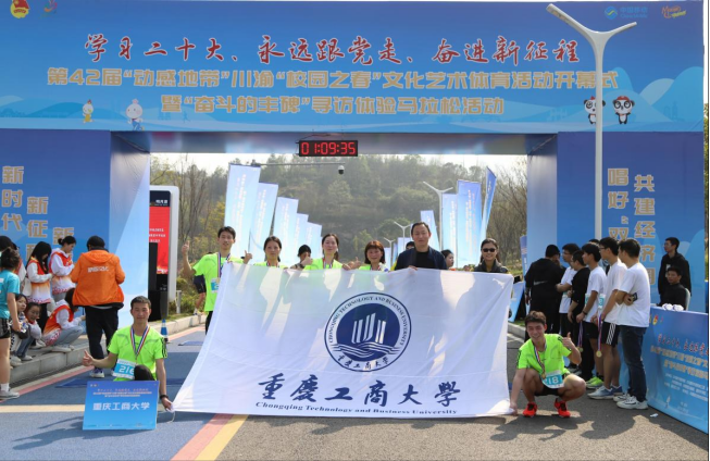 3月11日,“学习二十大、永远跟党走、奋进新征程 ”第42届“动感地带”川渝“校园之春”文化艺术体育活动开幕式暨“奋斗的丰碑”寻访体验马拉松活动在重庆两江新区协同创新区明月湖隆重举行。vwin德赢师生代表队参加了开幕式及马拉松活动。
