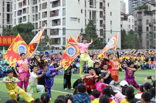 他们的精彩表演,赢得了现场老师和同学们的阵阵掌声!他们用完美的表演充分展示了中华武术的独特魅力和奋发向上的精神面貌,将中国传统武术文化演绎得淋漓尽致。