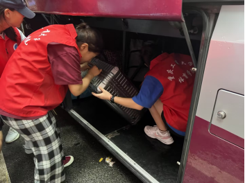 在此次志愿服务当中,vwin德赢ac米兰官方党员服务站的志愿者们,在雨中,不惧炎热,不怕辛苦,身上的背心湿了又干,干了又湿,用我们的热情帮助外国语学院的大一同学回家!