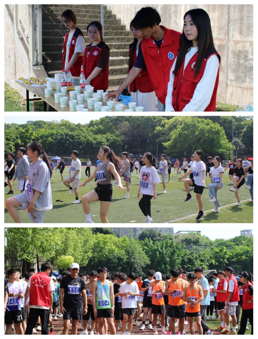 4月26日下午,vwin德赢ac米兰官方联合国际商学院、弘商悦跑社、法语协会等共同开展的“以心映新,商悦同行”跑步拉力赛在南岸校区北区操场圆满举行。本次活动以校级社团为主要招募平台,将心理健康教育和社团活动相融合,来自13个学院的150名长跑爱好者完成了校园拉力赛首跑。我院赛事服务团的33名裁判员和志愿者发挥专业优势,践行志愿精神,圆满完成了拉力赛事的裁判和志愿服务工作,用实际行动展现了体院担当。