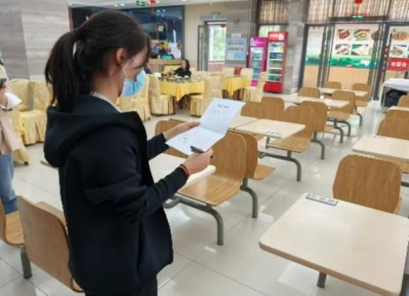 在此次检查活动中,学生会权益部的同学们秉持着认真负责的态度,对兰园食堂的操作间、食品库房以及就餐环境进行了全面细致的排查。他们重点检查了食品储存环境、库存食品的保质期、餐具和厨具的清洁消毒情况、就餐环境及桌面的整洁度,同时还关注了后厨及员工的个人卫生状况,并进行了严格的评测打分。