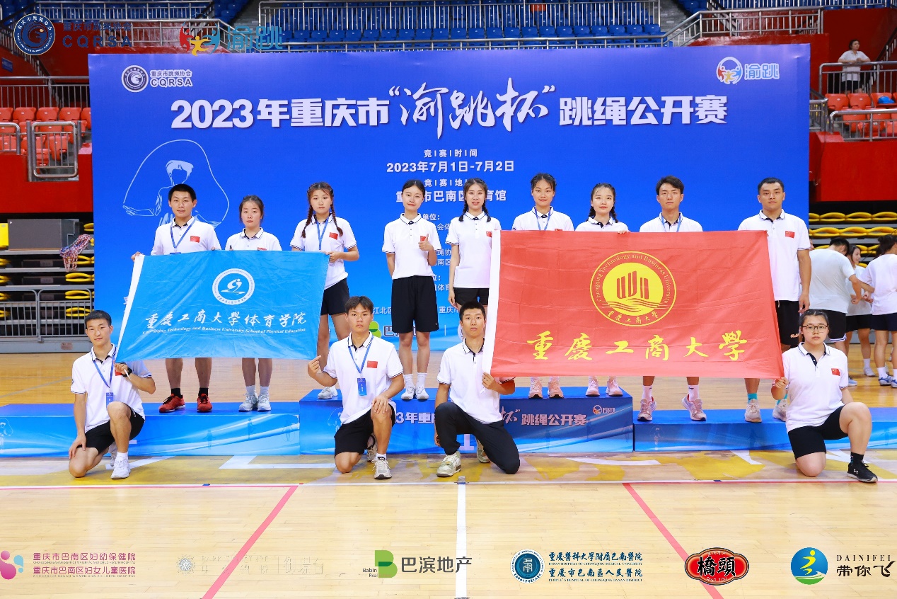由重庆市跳绳协会、重庆市巴南体育局主办的2023年重庆市“渝跳杯”跳绳公开赛,于2023年7月1日—2日在重庆市巴南体育馆开幕。vwin德赢师生代表队参加开幕式。